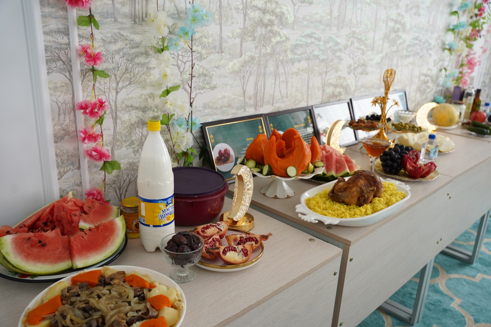 Сонымен қатар әйел жамағаты Пайғамбарымыз (оған Алланың салауаты мен сәлемі болсын) сүйген ас түрлерінен көрме ұйымдастырып, көпшілікке әр тағамның маңызын түсіндірді.
