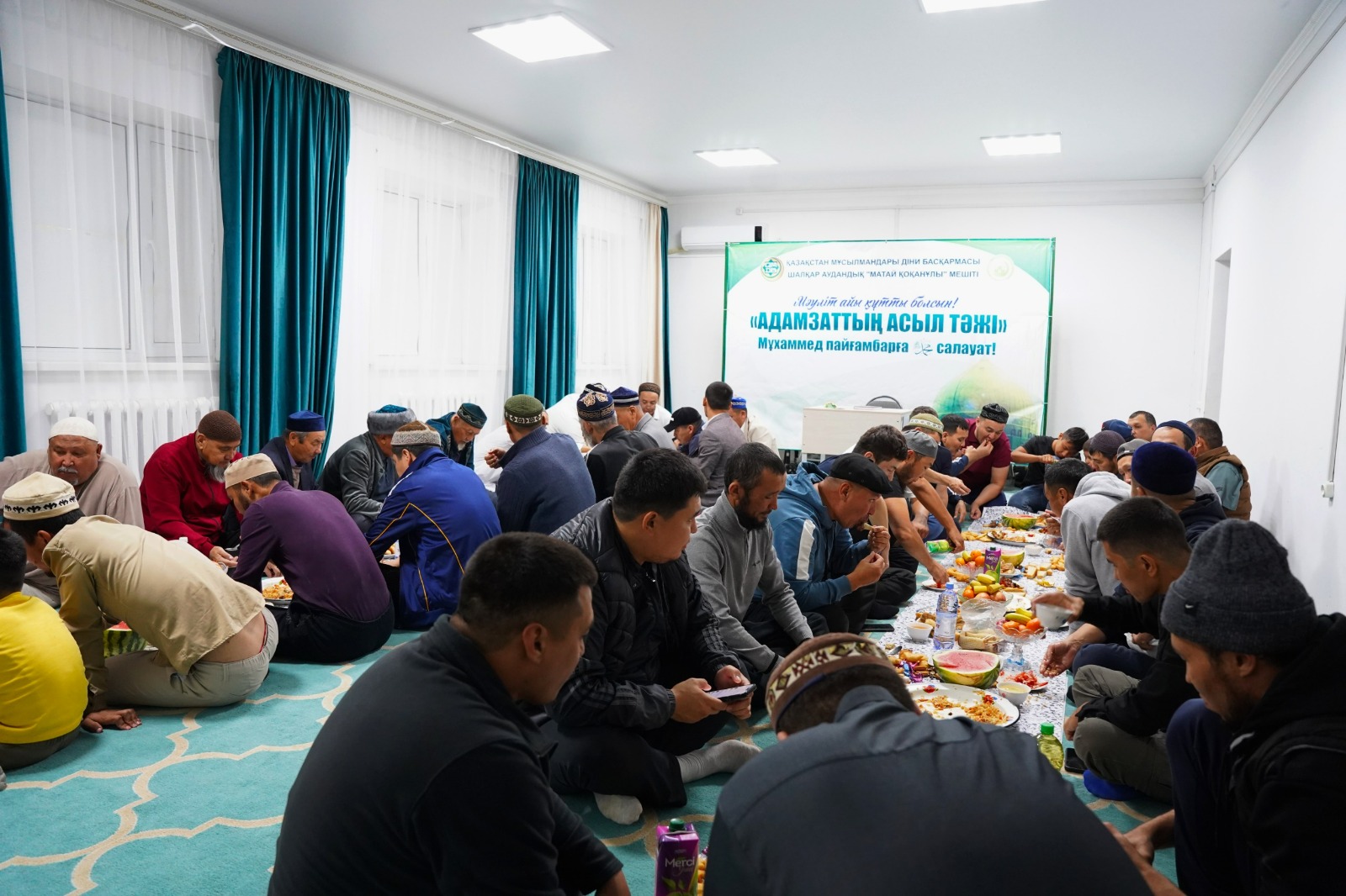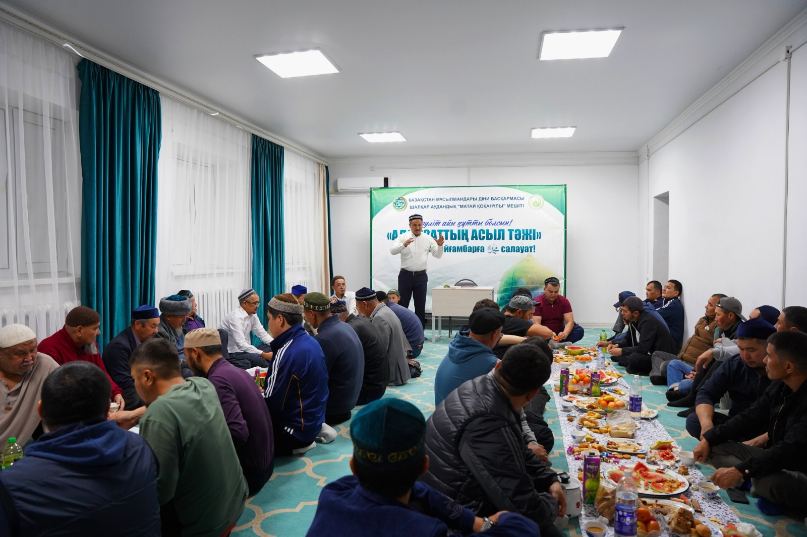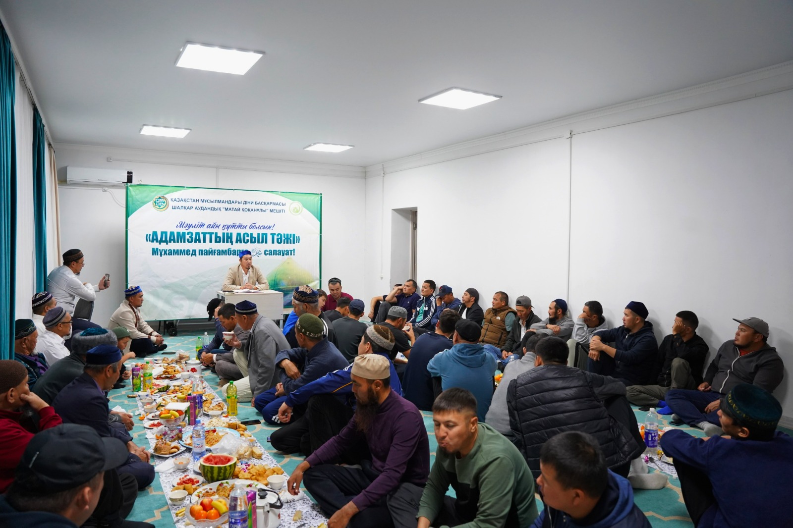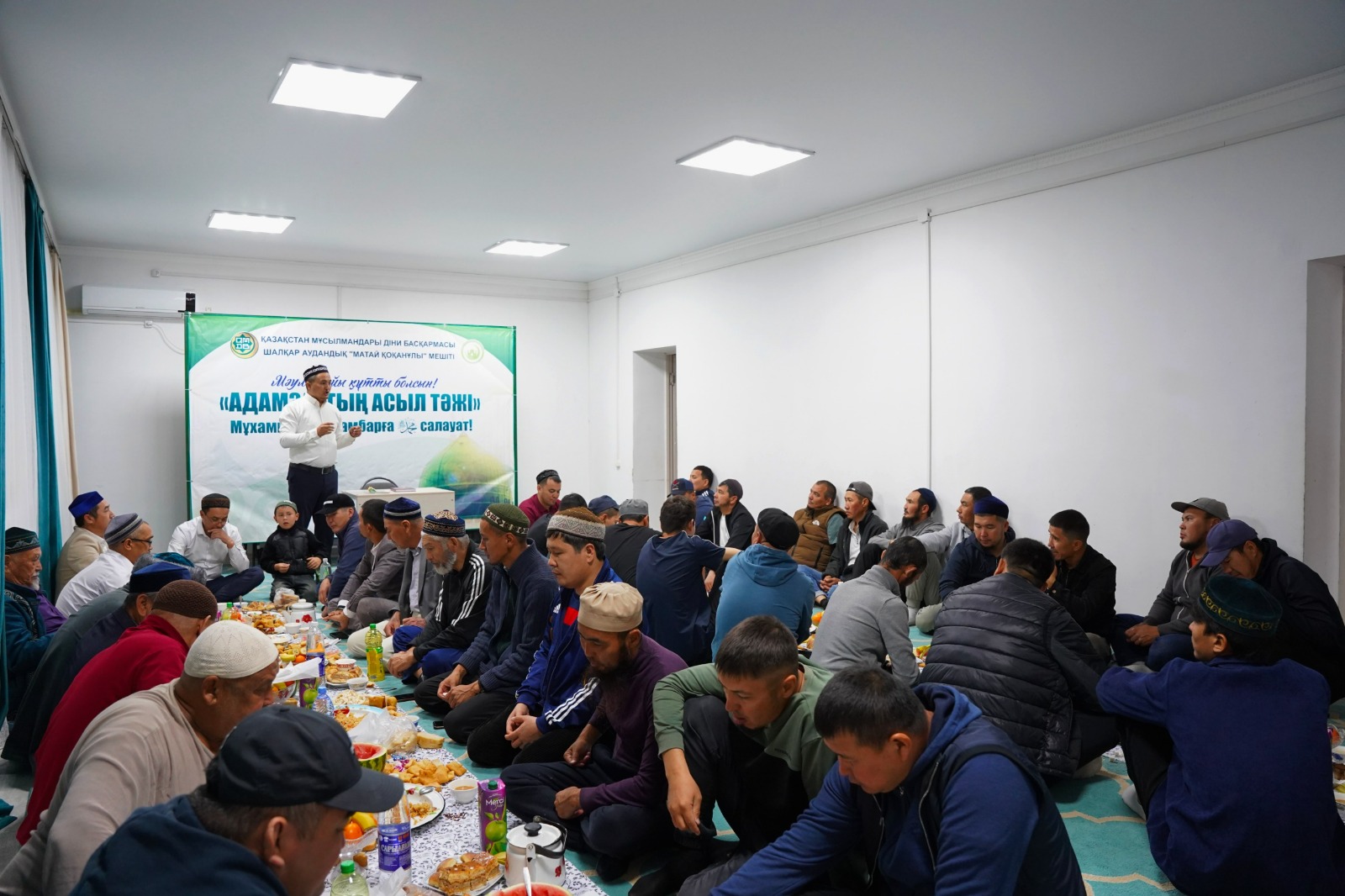 Шалқар қайырымдылық мекемесінде өткен рухани шара Құран оқумен басталып, салауат айтумен жалғасын тапты. Одан кейін жамағатқа дастарқан жайылып, Пайғамбар ғұмырынан ғибратты оқиғалар баяндалды.