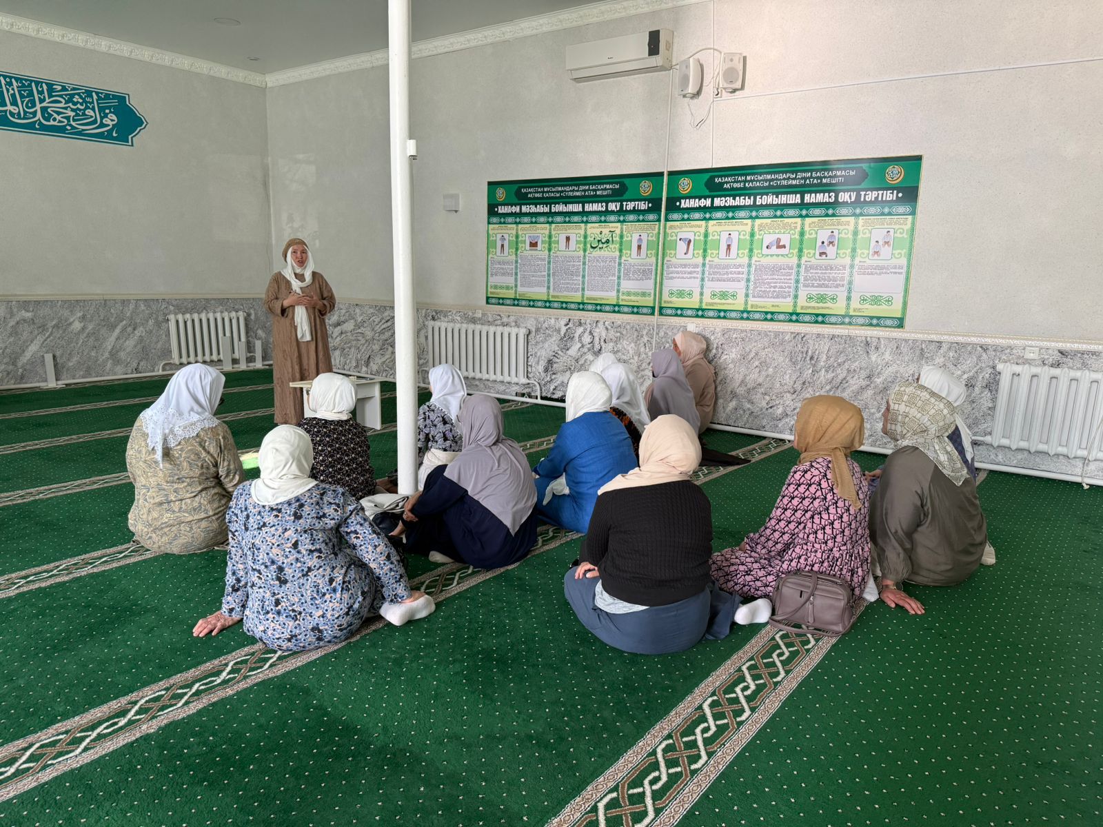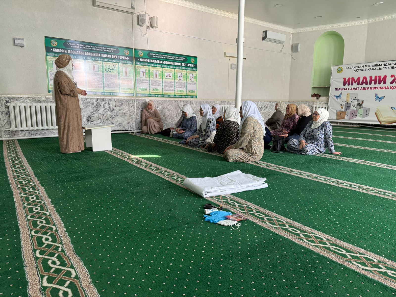 Аталған мешіттің ұстазы Алтынай Исаева «Ауыр халде жатқан адамға жасалатын амалдар, қарыздан құтылу, ауру адамды зиярат ету» тақырыбында уағыз-насихат айтты.
