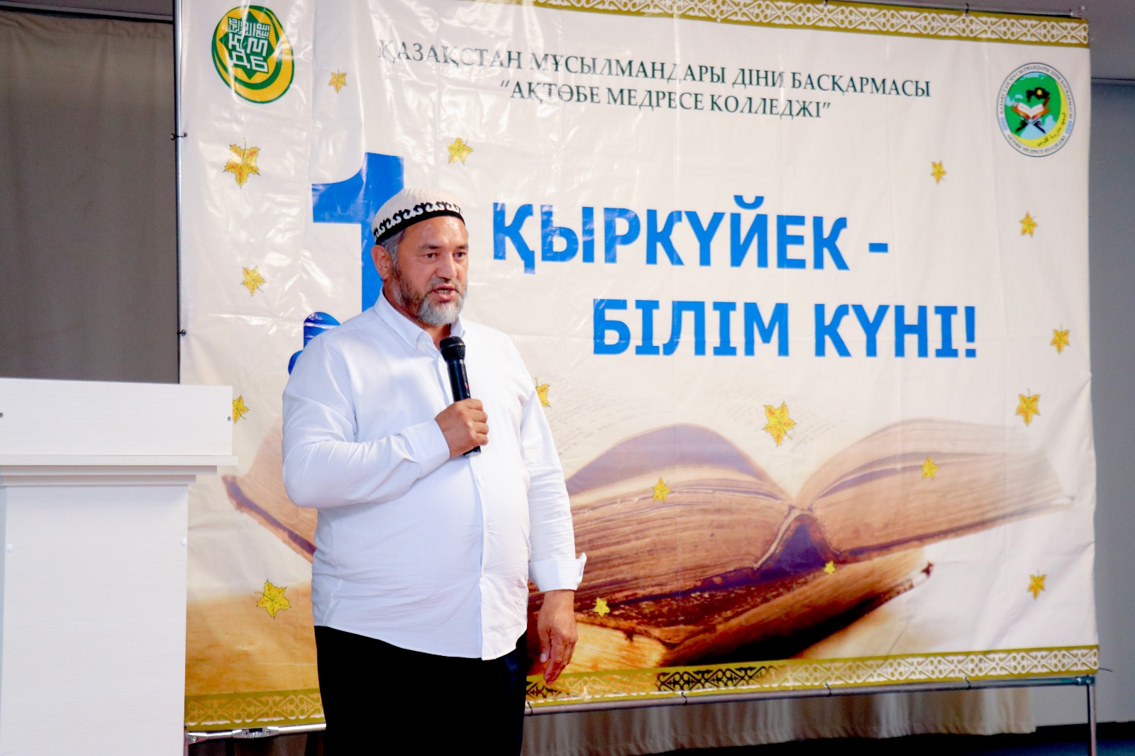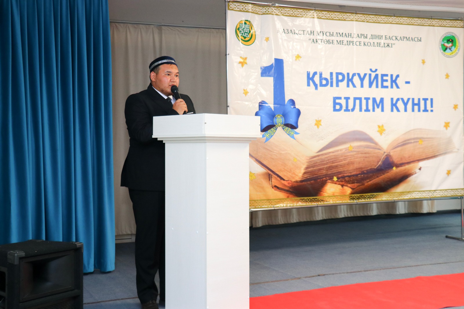 Салтанатты жиынды Ақтөбе облысының Бас имамы Амантай Садиев ашып, жаңа оқу жылының ашылуымен ұстаздар мен шәкірттерді құттықтады. Сонымен қатар болашақ дін қызметкерлеріне насихат айтып, шәкірттерді терең білім алуға шақырып, игі ниетін жеткізді.