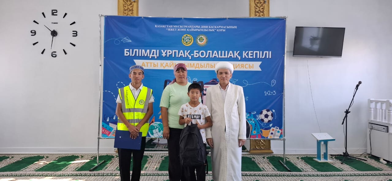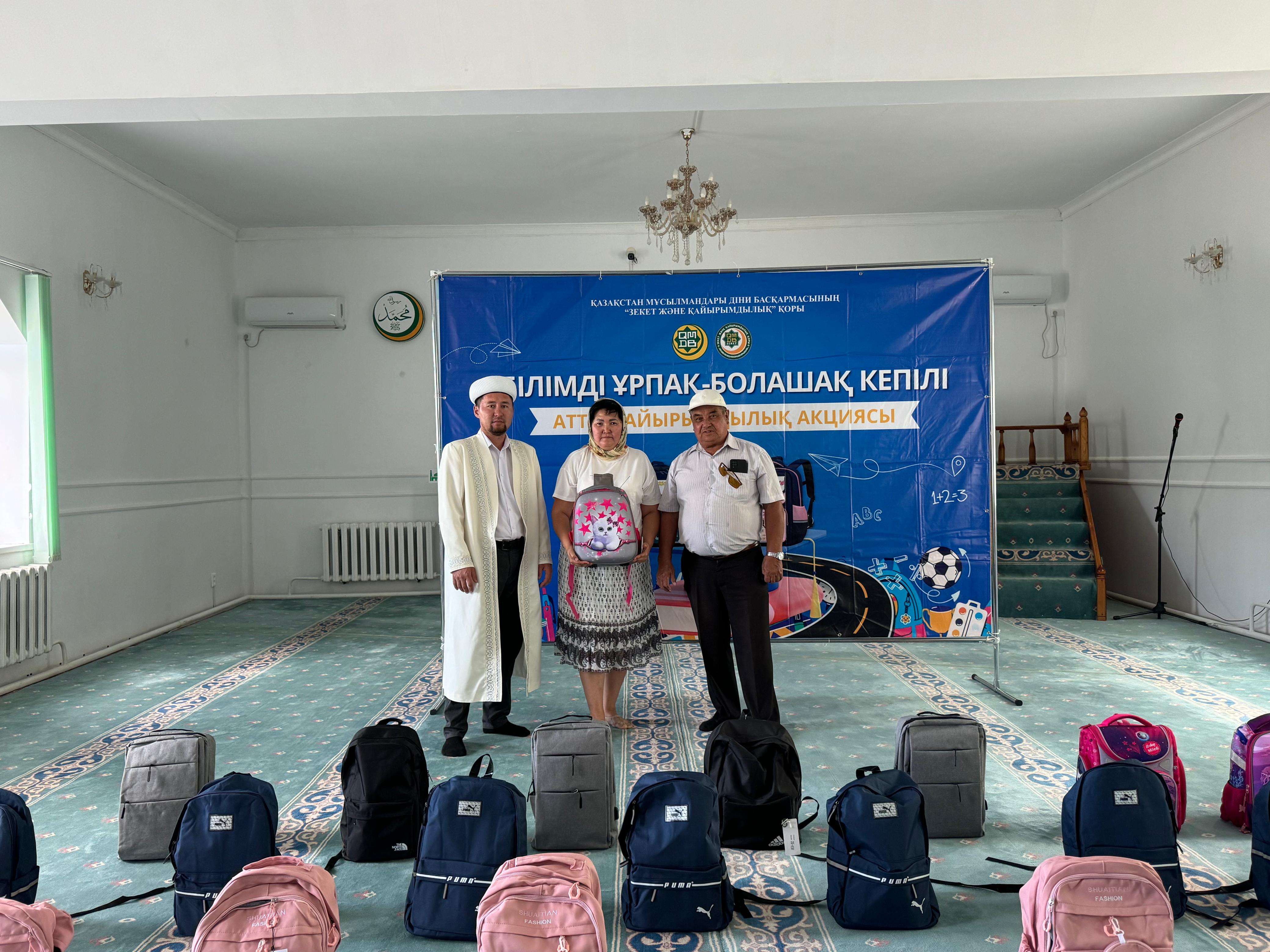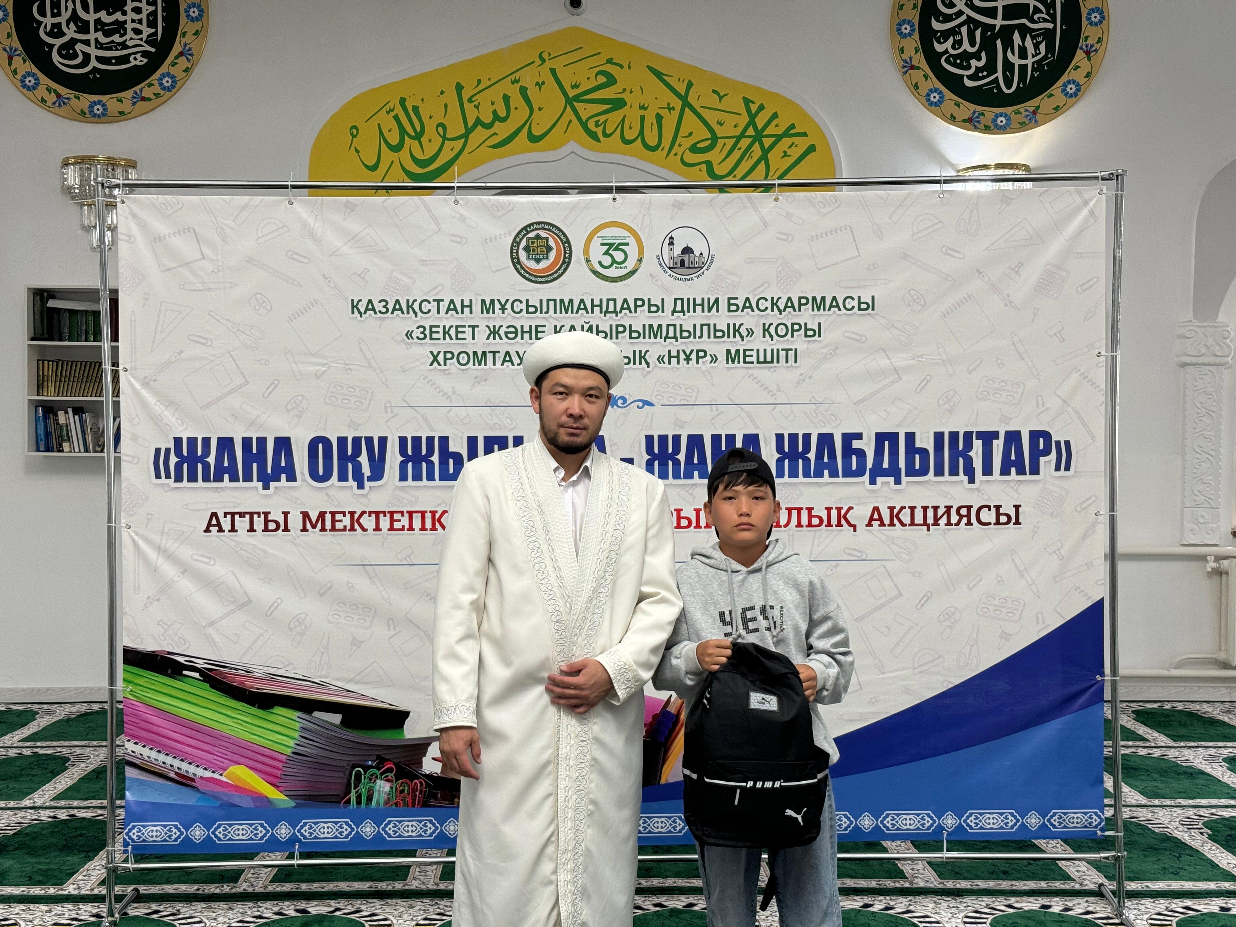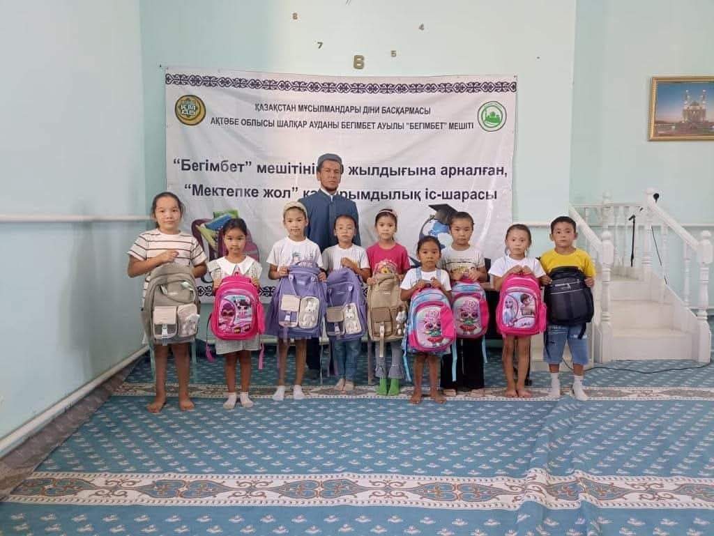 Ақтөбе облыстық орталық «Нұр Ғасыр» мешітінде ҚМДБ Төрағасы, Бас мүфти Наурызбай қажы Тағанұлы хазіреттің жылдық тапсырмасы аясында Ақтөбе облысы өкілдігі ҚМДБ «Зекет және қайырымдылық» қорының «Мектепке жол» қайырымдылық акциясын өткізіп, облыстың Бас имамы Амантай Садиев, өңірдегі «Зекет және қайырымдылық» қорының жауапты өкілі Алмат Әли қатысып, 1134 оқушыға сөмке мен мектеп құралдарын табыстады.