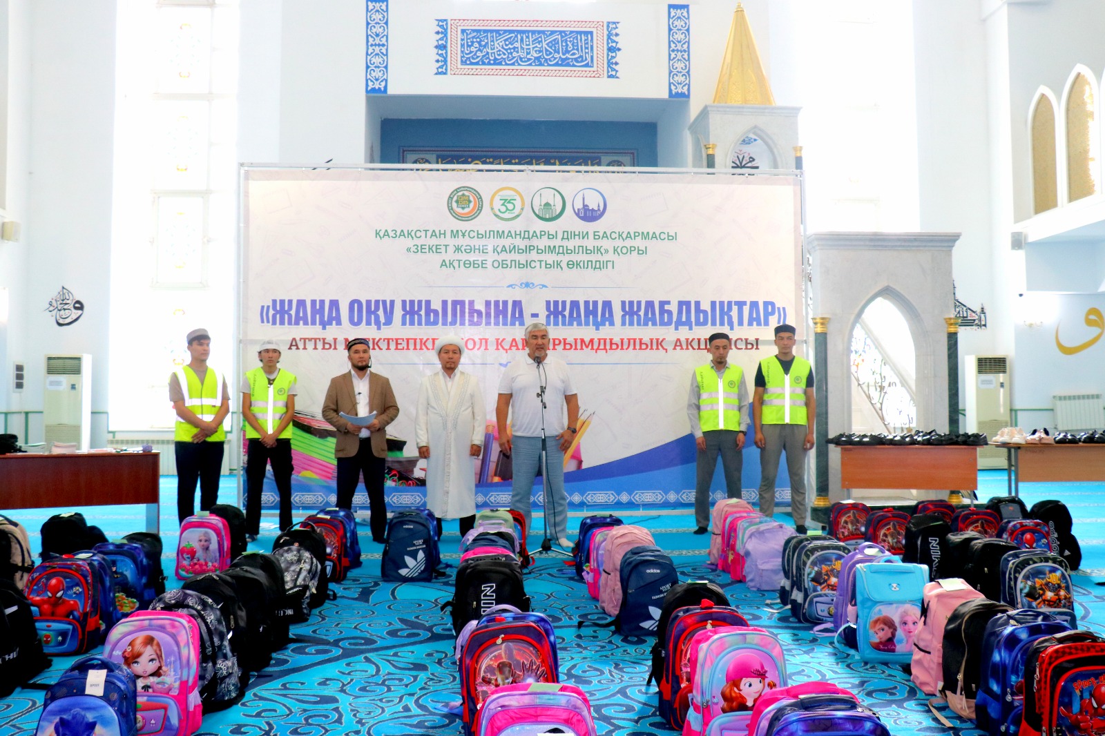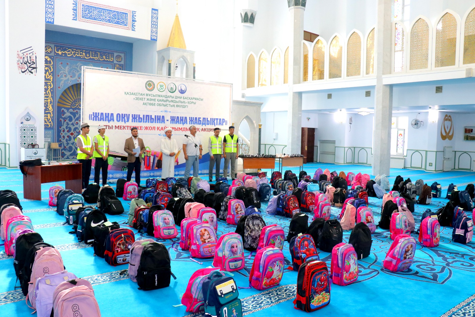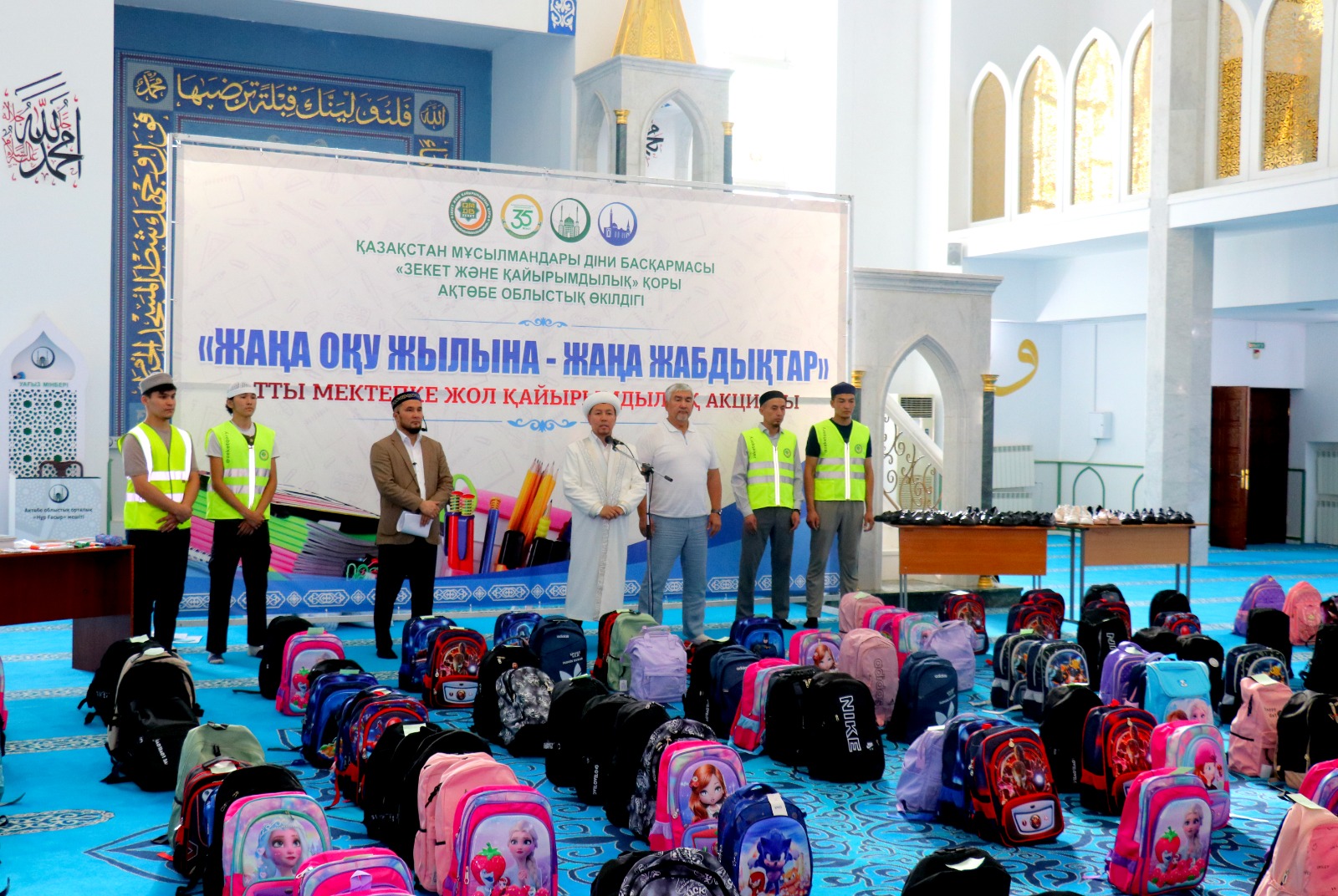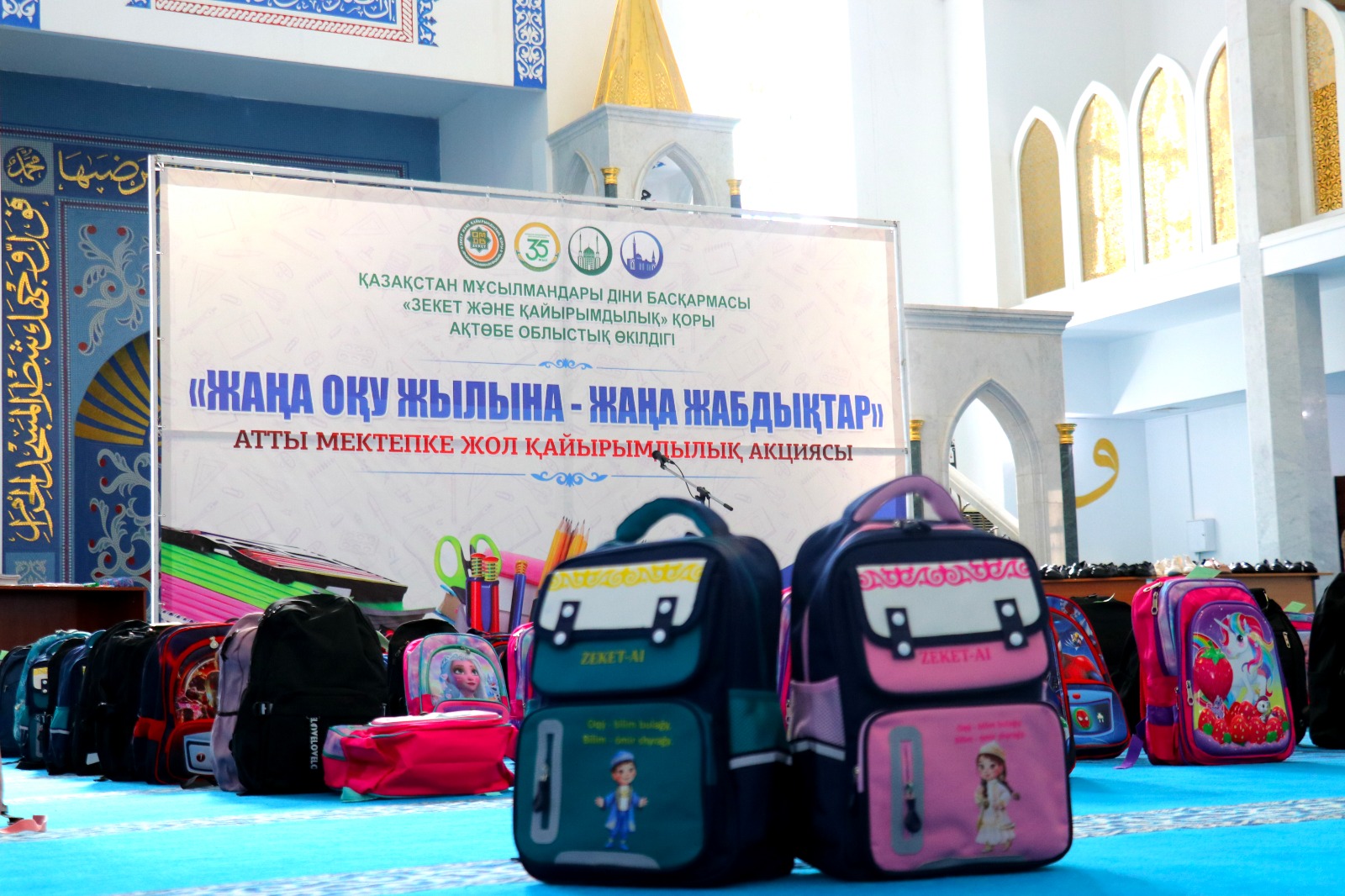 Ақтөбе облыстық орталық «Нұр Ғасыр» мешітінде ҚМДБ Төрағасы, Бас мүфти Наурызбай қажы Тағанұлы хазіреттің жылдық тапсырмасы аясында Ақтөбе облысы өкілдігі ҚМДБ «Зекет және қайырымдылық» қорының «Мектепке жол» қайырымдылық акциясын өткізіп, облыстың Бас имамы Амантай Садиев, өңірдегі «Зекет және қайырымдылық» қорының жауапты өкілі Алмат Әли қатысып, 1134 оқушыға сөмке мен мектеп құралдарын табыстады.