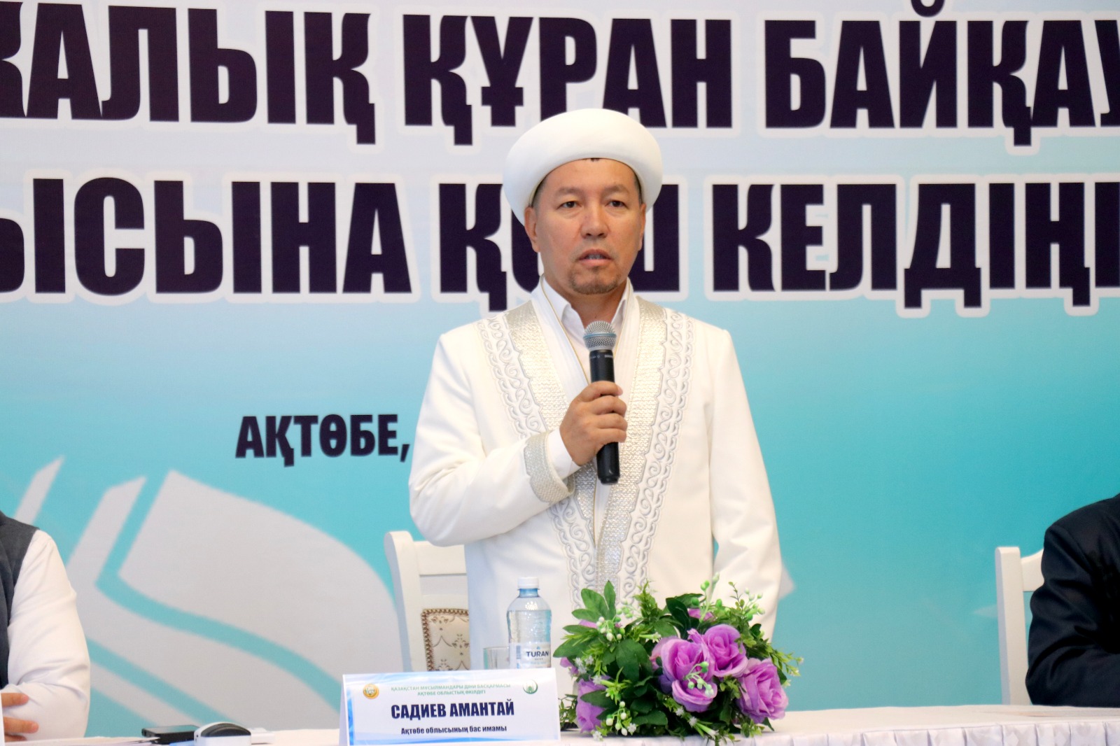 «Құран жаттау, оны үздіксіз оқып жүру үлкен сауап. Алла Тағала қасиетті Құранда: «Ендеше, Алланың шексіз рақымына бөленеміз десеңдер, Құран оқылғанда, оған құлақ түріп, үнсіз тыңдаңдар!» – деген. Демек, осында жарысқа келіп, Құранды тыңдаудың өзі үлкен сауап және Алланың рақымын жақындатады», – деп Ақтөбе облысының Бас имамы Амантай Садиев Алланың мұғжиза ретінде түсірген кітабының мәртебесін түсіндіріп, Құран жарысының маңызына тоқталып, сайысқа қатысушы үміткерлерге сәттілік тіледі. Сонымен қатар аталған байқауға демеушілік танытқан жомарт жандарға алғысын білдірді.