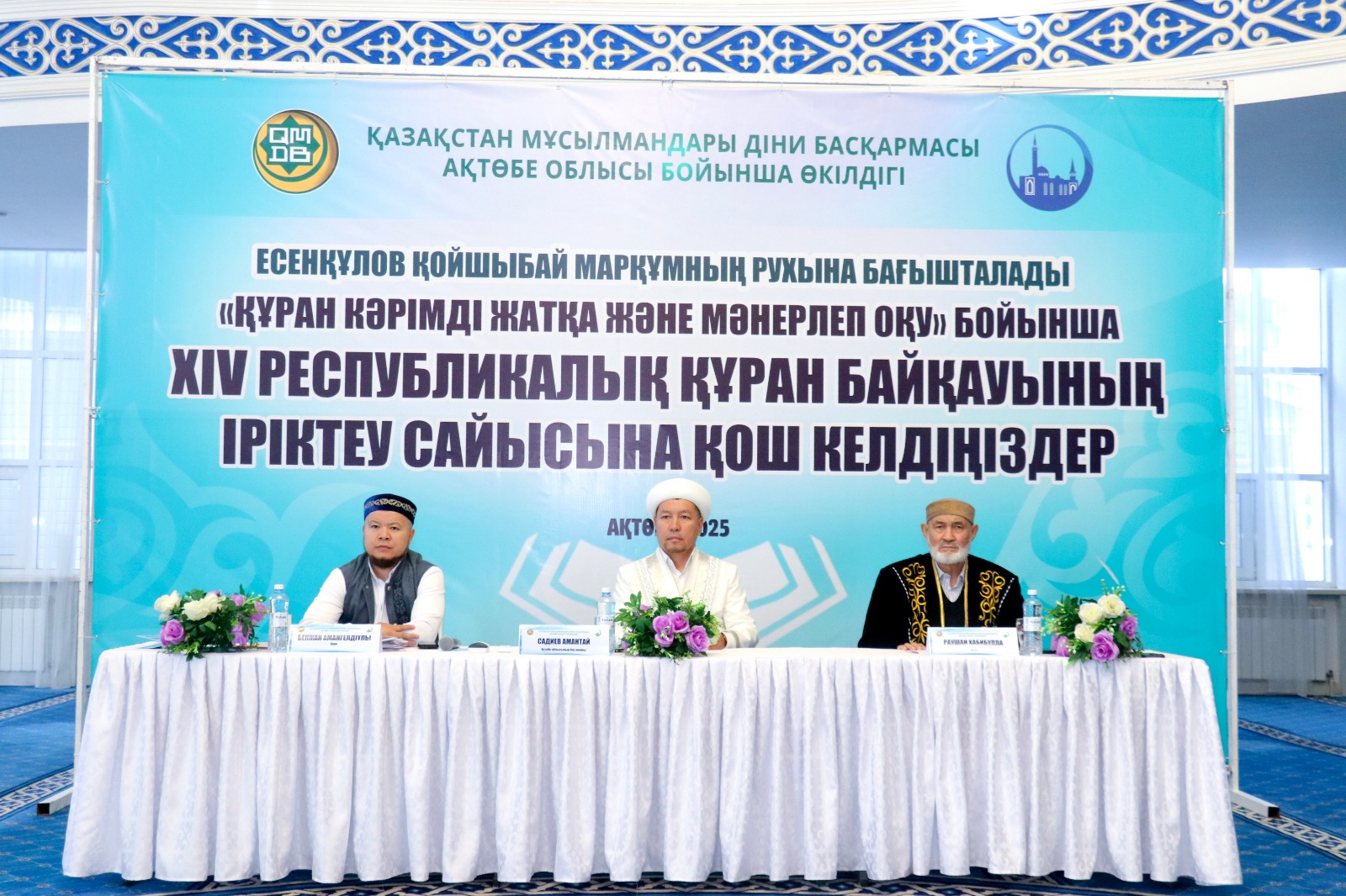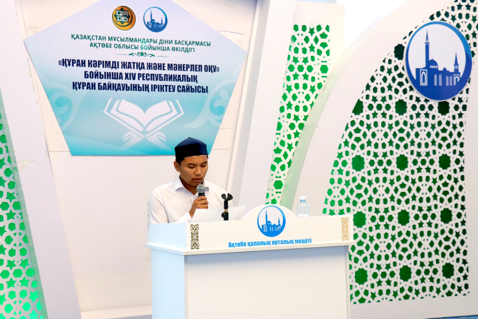ҚМДБ Ақтөбе облысы өкілдігінің ұйымдастыруымен Ақтөбе қалалық орталық мешітінде Құран Кәрімді жатқа және мәнерлеп оқудан XIV республикалық Құран жарысына іріктеу сайысы өтті.