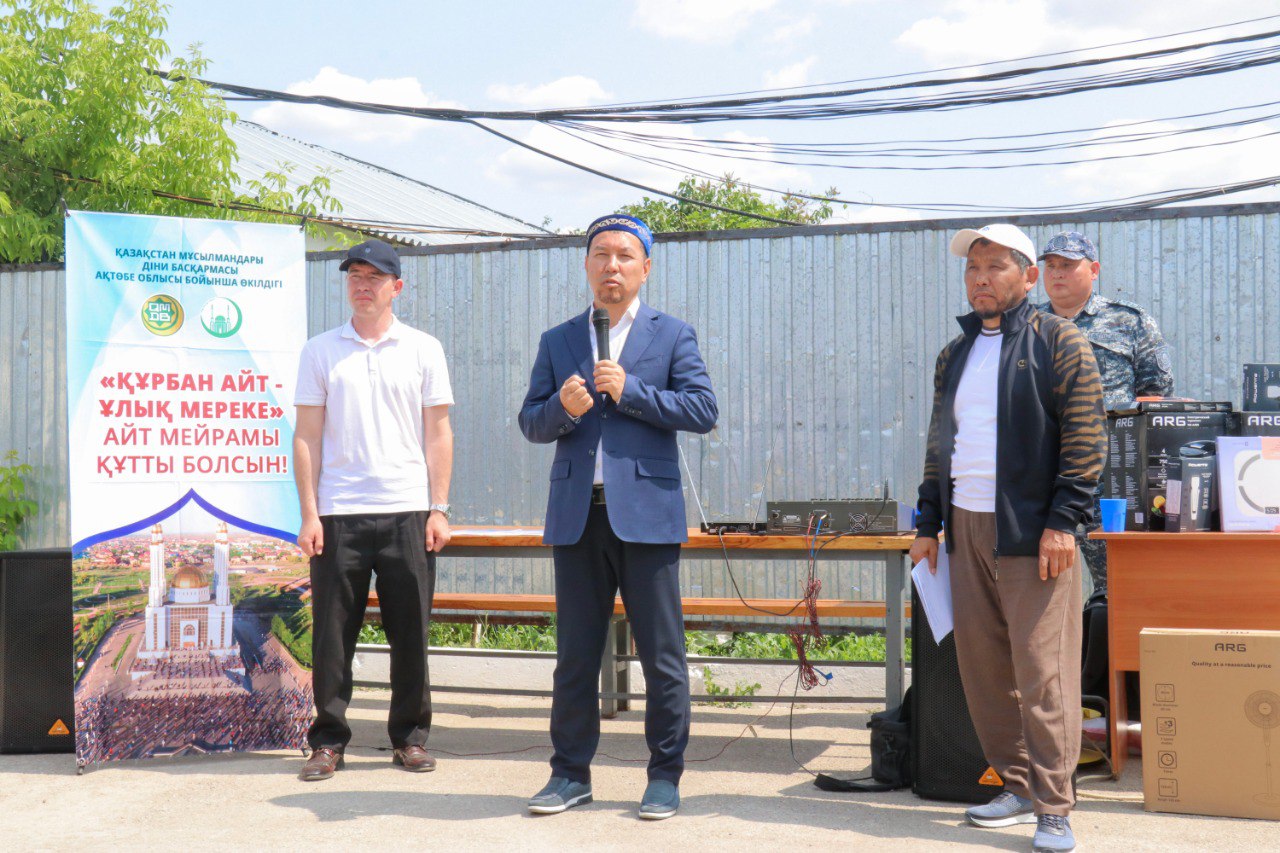 Құрбан айтта 703 қой, 56 ірі қара, 6 ешкі малы құрбандыққа шалынып, 37 тоннаға жуық құрбандық еттері 2418 отбасы мен 9 мекемеге таратылды.