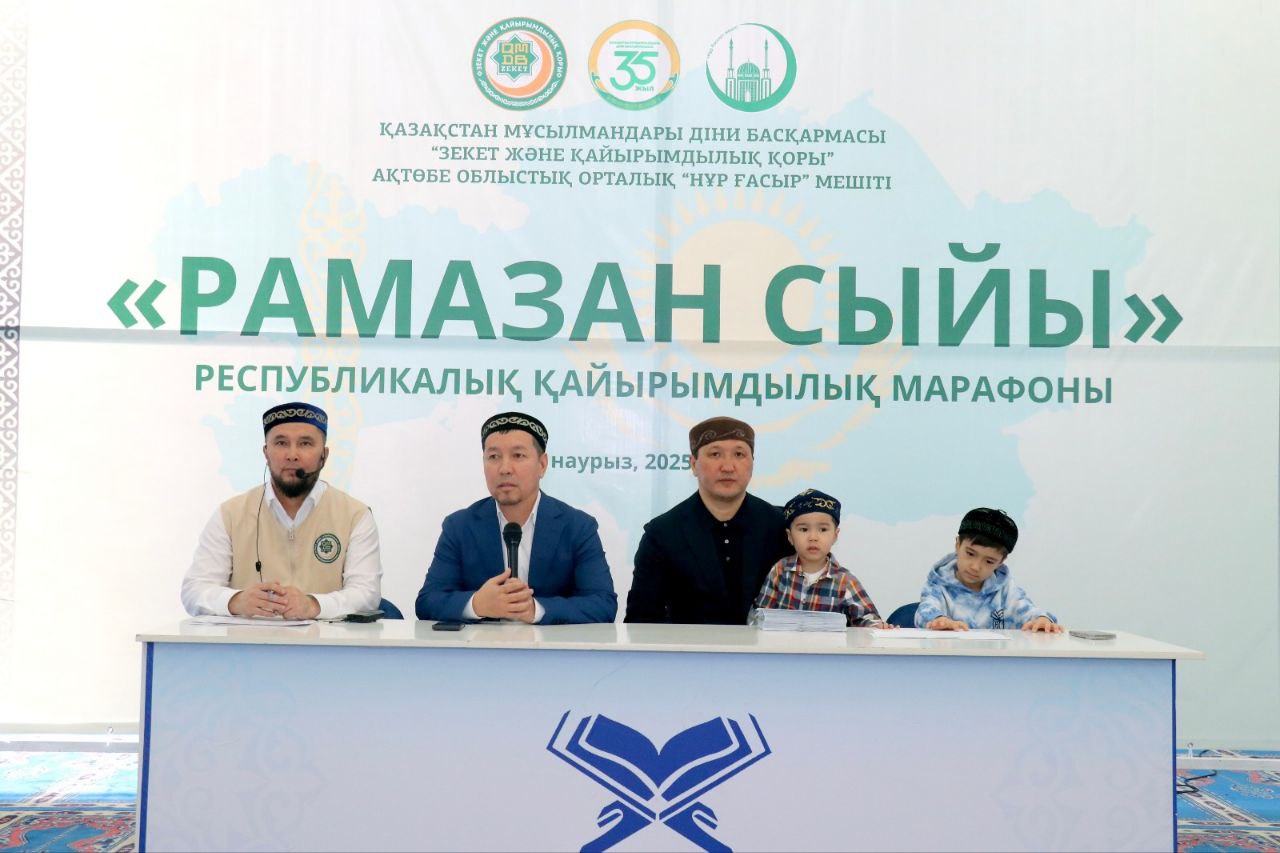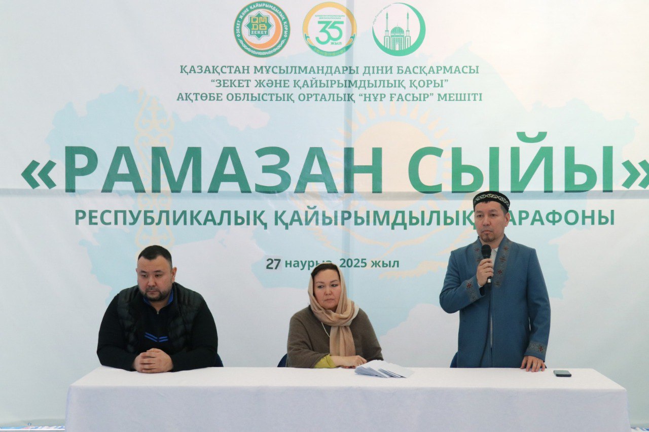 ҚМДБ-на қарасты «Зекет және қайырымдылық» қорының «Тайқазан», «Өмірге үміт сыйла», «Ел үлесі-пәтерге», «Киім-кешек», «Қолдан-қолға», «Жылулық сыйла», «Шәкірттер», «Рамазан» жобасы, «Құрбан айт» акциялары аясында Ақтөбе облысы өкілдігінде 2024 жылдың 23 тамызынан бастап 2025 жылдың тамыз айы аралығында 952 шара ұйымдастырылып, көп балалы, жалғызбасты ана, аз қамтылған, мүмкіндігі шектеулі санаттағы 93 565 отбасыға (адам) қайырымдылық жасалды.