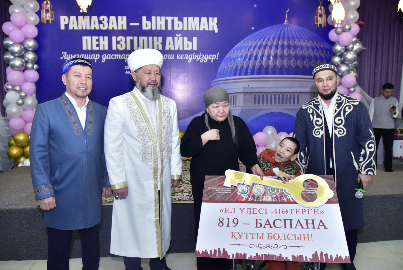 1 жыл ішінде мүмкіндігі шектеулі санаттағы және жалғыз басты, көп балалы 6 отбасыға үй берілді. Оның 4-і Ақтөбе қаласынан, 2-і Шалқар ауданынан. Шалқарлық отбасының бірі 12 бала тәрбиелеп отырған үлгілі жанұя. Ал екіншісі 1 санаттағы мүмкіндігі шектеулі баласы бар отбасы. Ақтөбе қаласындағы 4 үйді ҚМДБ Төрағасы, Бас мүфти Наурызбай Тағанұлы хазірет мүфтият атынан берілген ауызашар дастарханында табыстады.