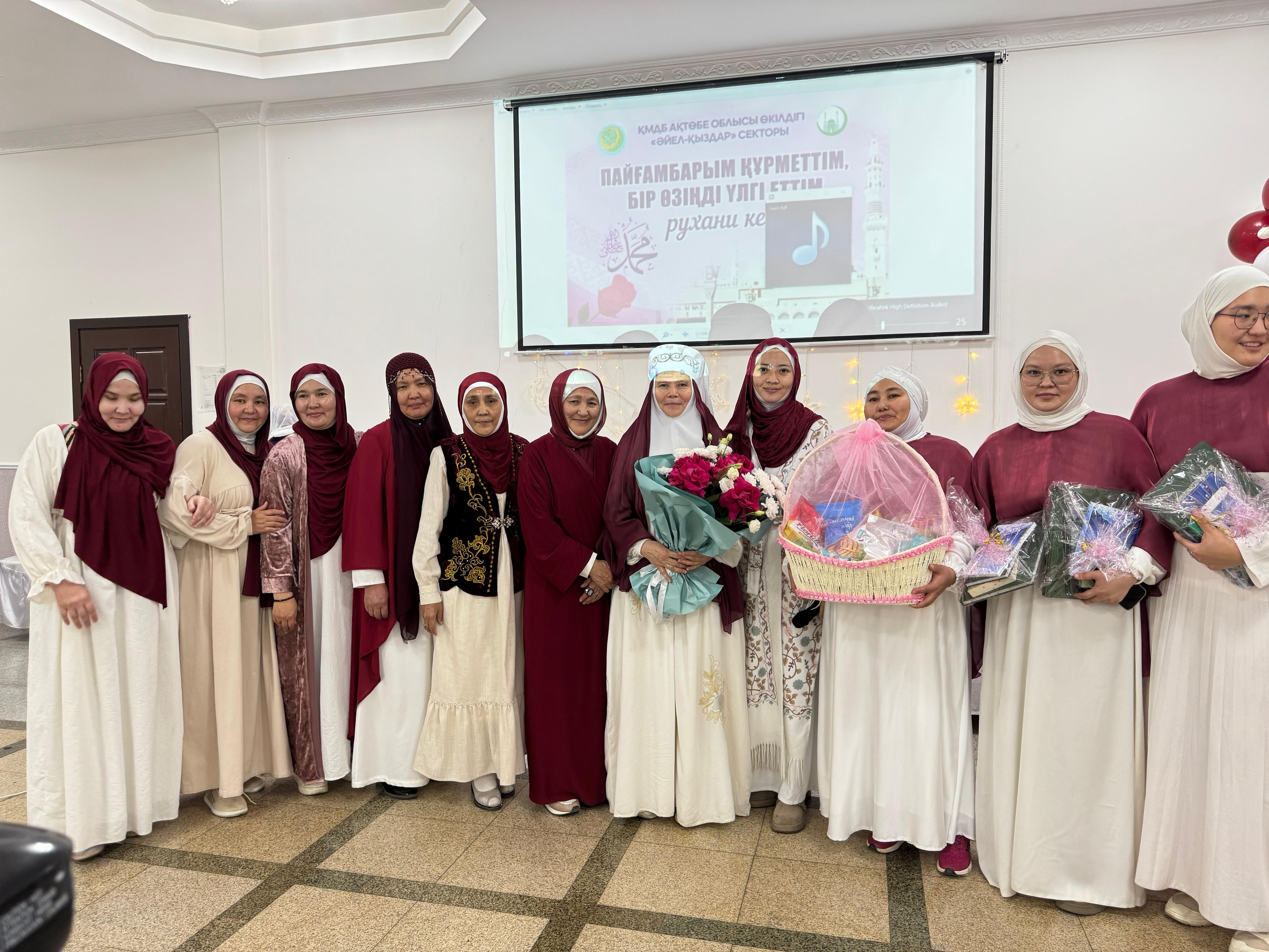 «Әйел-қыздар» секторының ұйымдастыруымен адамзаттың ардақтысы, Мұхаммед пайғамбардың (Оған Алланың салауаты мен сәлемі болсын) дүниеге келген айының құрметіне атқарылған іс шаралар қортындыланып, «Пайғамбарым құрметтім, бір өзіңді үлгі еттім» атты рухани кеш болды.