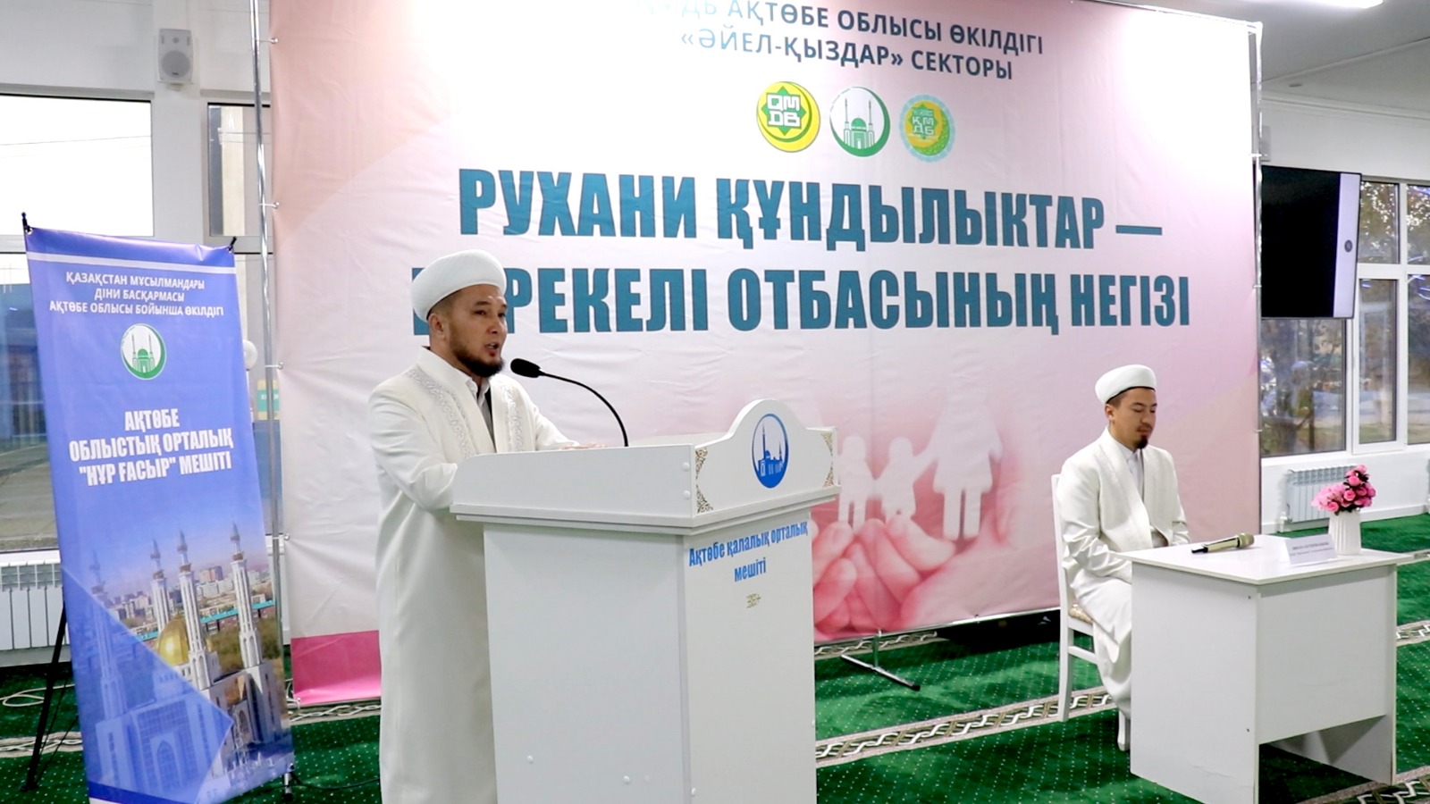 Бас мүфти Наурызбай қажы Тағанұлының бастамасымен «Ислам және отбасы құндылығы» жылы аясында Ақтөбе облысы өкілдігіндегі «Әйел-қыздар» секторының ұйымдастыруымен Ақтөбе қалалық орталық мешітінде «Рухани құндылықтар – берекелі отбасының негізі» атты танымдық семинар өтті.