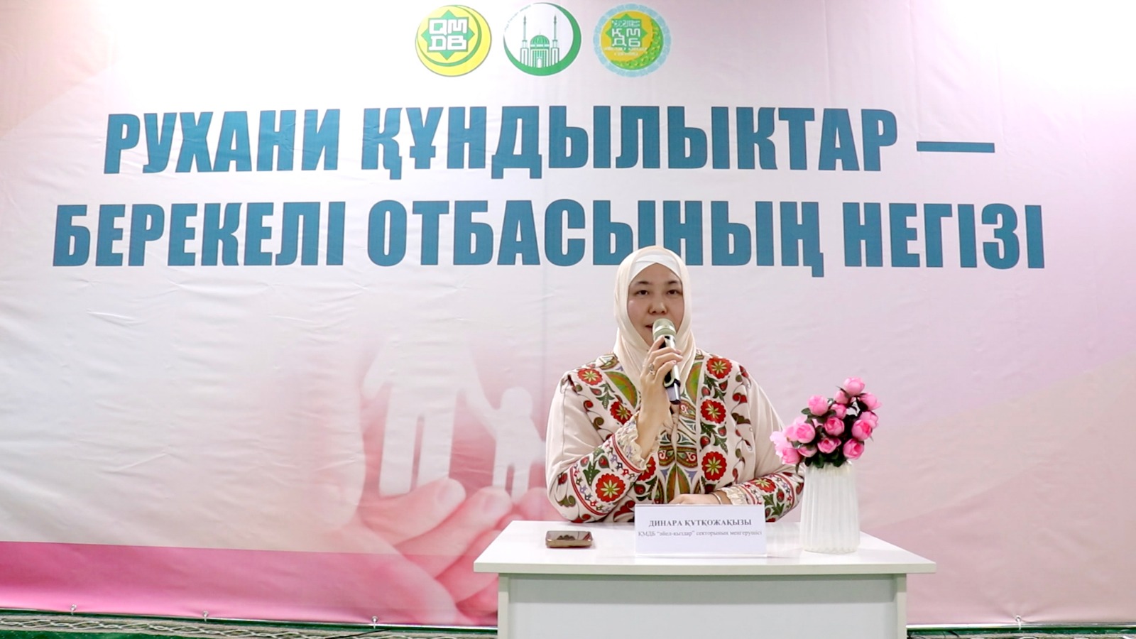 Облыс деңгейінде өтіп жатқан семинарға арнайы шақыртумен келген ҚМДБ «Әйел-қыздар» секторының меңгерушісі Динара Нұрғалиева уағыз-насихат айтып, иманды отбасының негізі, әйелдің қоғамдағы рөлі және рухани құндылықтарды сақтаудың маңыздылығы туралы насихат айтты.