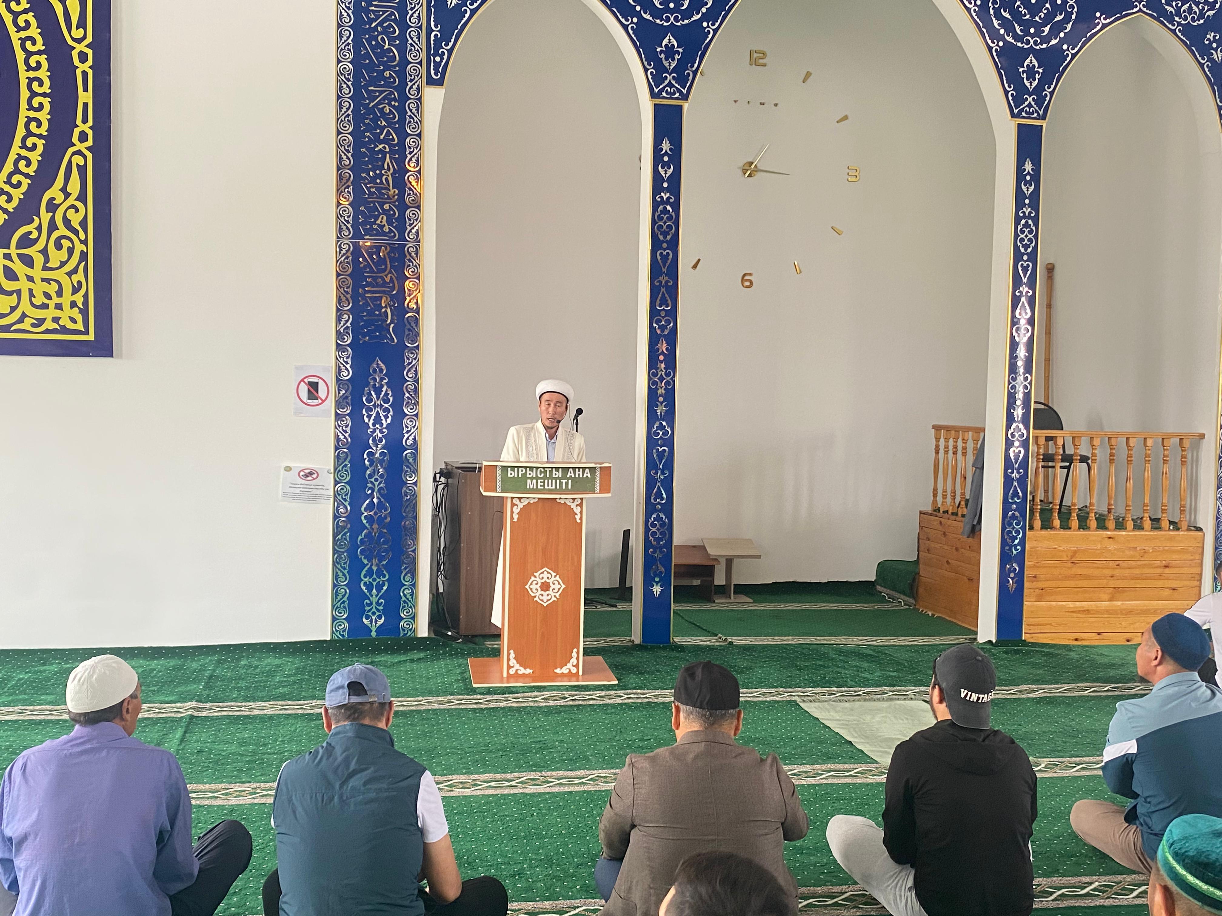 Имам «Алла елшісінің (оған Алланың салауаты мен сәлемі болсын) болмысы мен мәмілесі» тақырыбында өнегелі өмірінен ғибратты оқиғаларын жамағатқа баяндап берді. Қазіргі таңда мұсылман адамның бойында болуы керек сүннет-көркем ахлақ, әдеп жайында кеңірек түсіндіріп өтті.