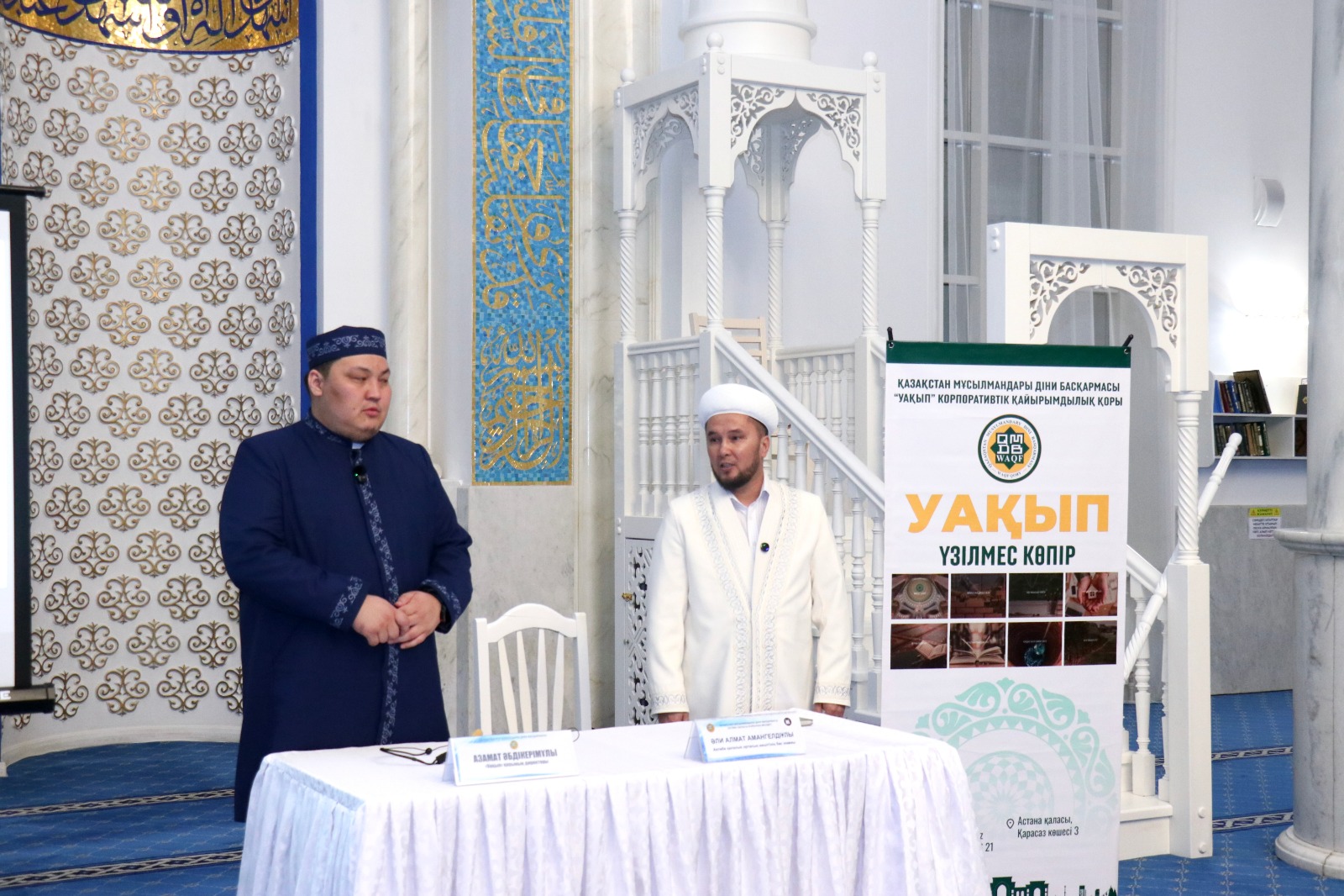 Кездесу барысында исламдағы уақып ұғымының терең мәні мен қоғамдағы орны кеңінен түсіндірілді. Уақып – адам баласының мал-мүлкін Алла разылығы үшін арнап, оның пайдасын халық игілігіне тұрақты түрде жұмсауы екені айтылып, бұл амалдың сауапы үзілмейтін сауаптардың бірі – садақа жария екені жамағатқа жеткізілді.