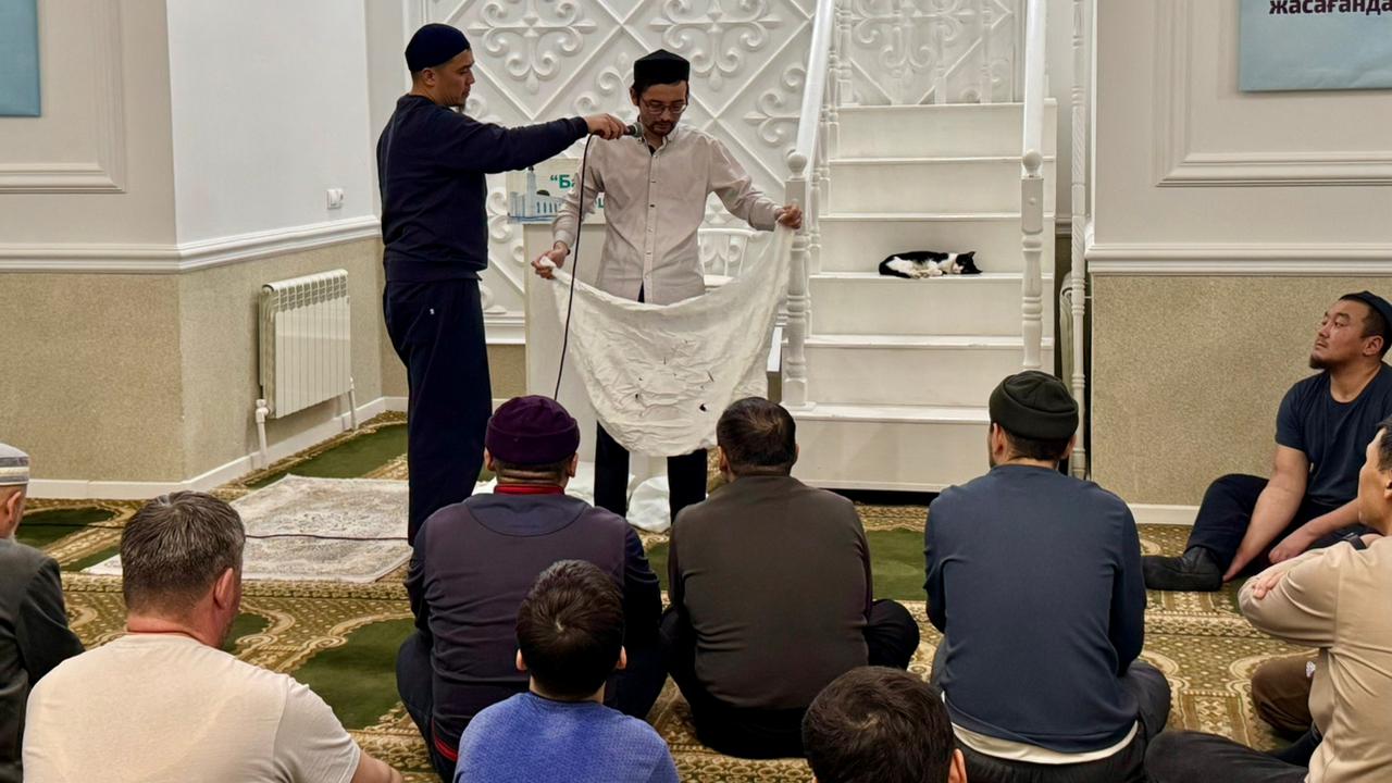Ақтөбе қаласы «Бақытжан» мешітінде мешіт шәкірттері қатысқан марқұмды кебіндеуді үйрету танымдық шарасы өтті.