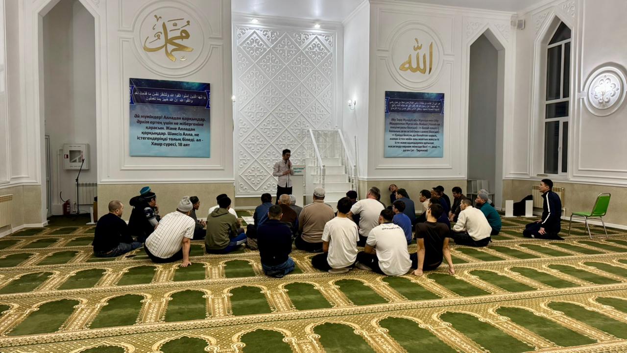 Дәрісті аталған мешіттің наиб имамы Абылай Үсенұлы жүргізіп, марқұмды оң жаққаа жатқызу, жуындыру, пәктеу, кебіндеу, ақтық сапарға шығарудың тәртібі туралы кеңінен мағұлмат беріп өтті. Танымдық шара алдаға уақытта жалғасын табатын болады.