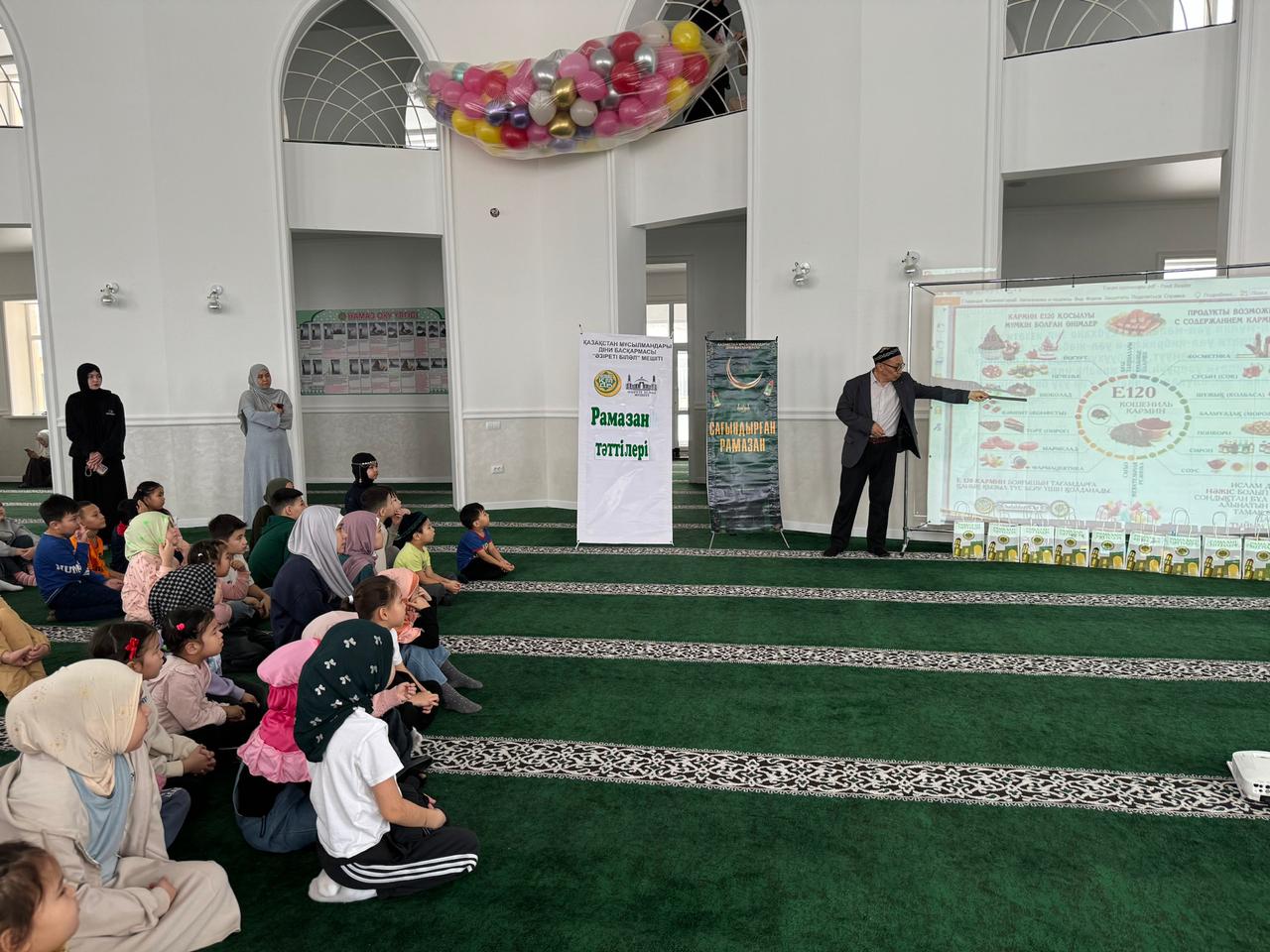 Мешіттің бас имамы Такеев Нұрлыбек астың адалын, құрамының таза болуы дінімізде маңызы жоғары екенін балаларға жеткізді. Ал мешіт ұстазы Жазира Айбекқызы мен шәкірттері бүлдіршіндерге түрлі ойындар ұйымдастырды.